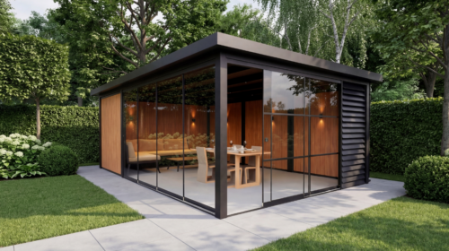 Met het modulaire systeem groeit de Panorama-lijn met u mee. U kiest het model dat past bij uw tuin en vult dit naar wens in met glaswanden, planktypes en indeling. Later uitbreiden met een groter zitgedeelte, meer glas of extra opslagruimte is eenvoudig te realiseren binnen hetzelfde systeem. Zo blijft uw tuinkamer altijd afgestemd op uw manier van leven – of u nu een plek zoekt om te loungen, te werken of gasten te ontvangen.