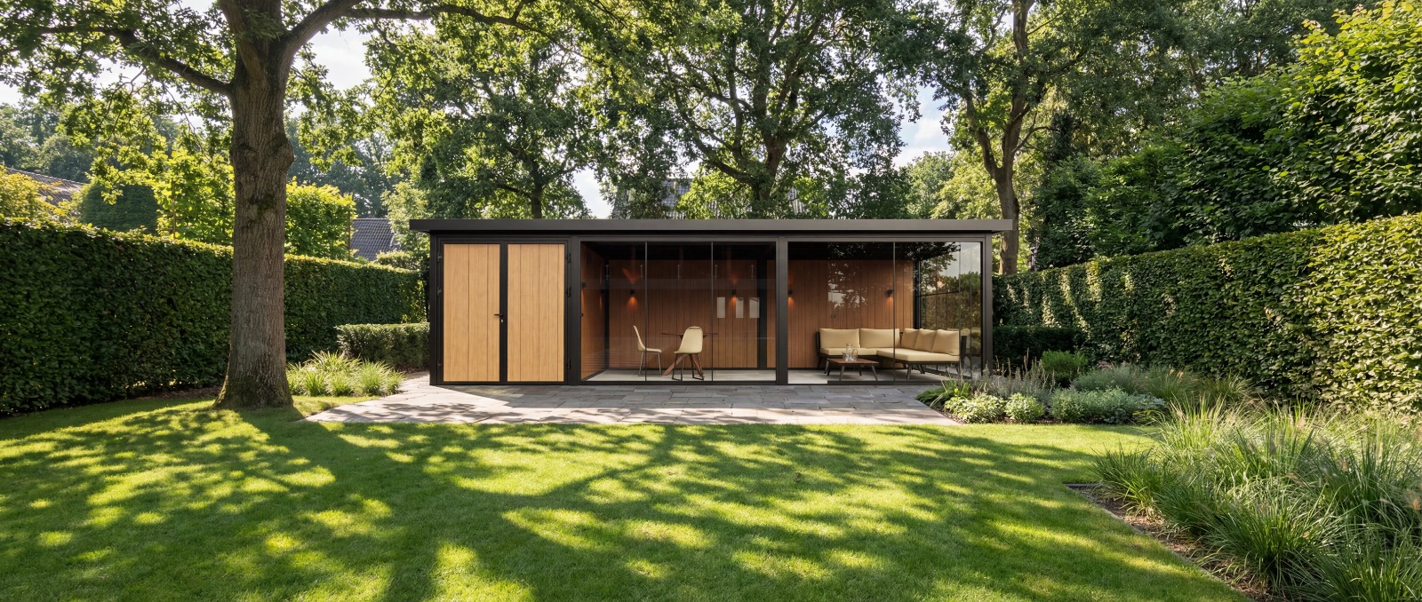 Het resultaat is een strak geheel dat naadloos integreert in elk type buitenruimte – van moderne stadstuin tot ruim buitenverblijf.