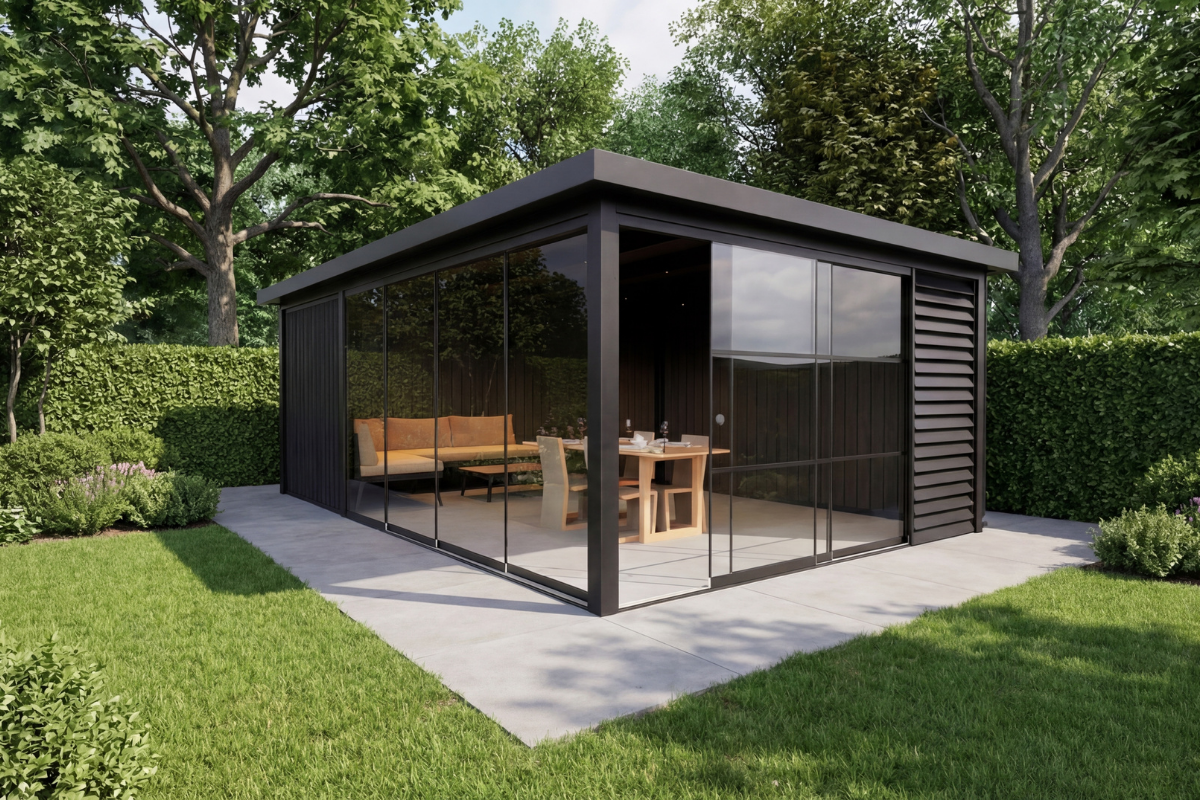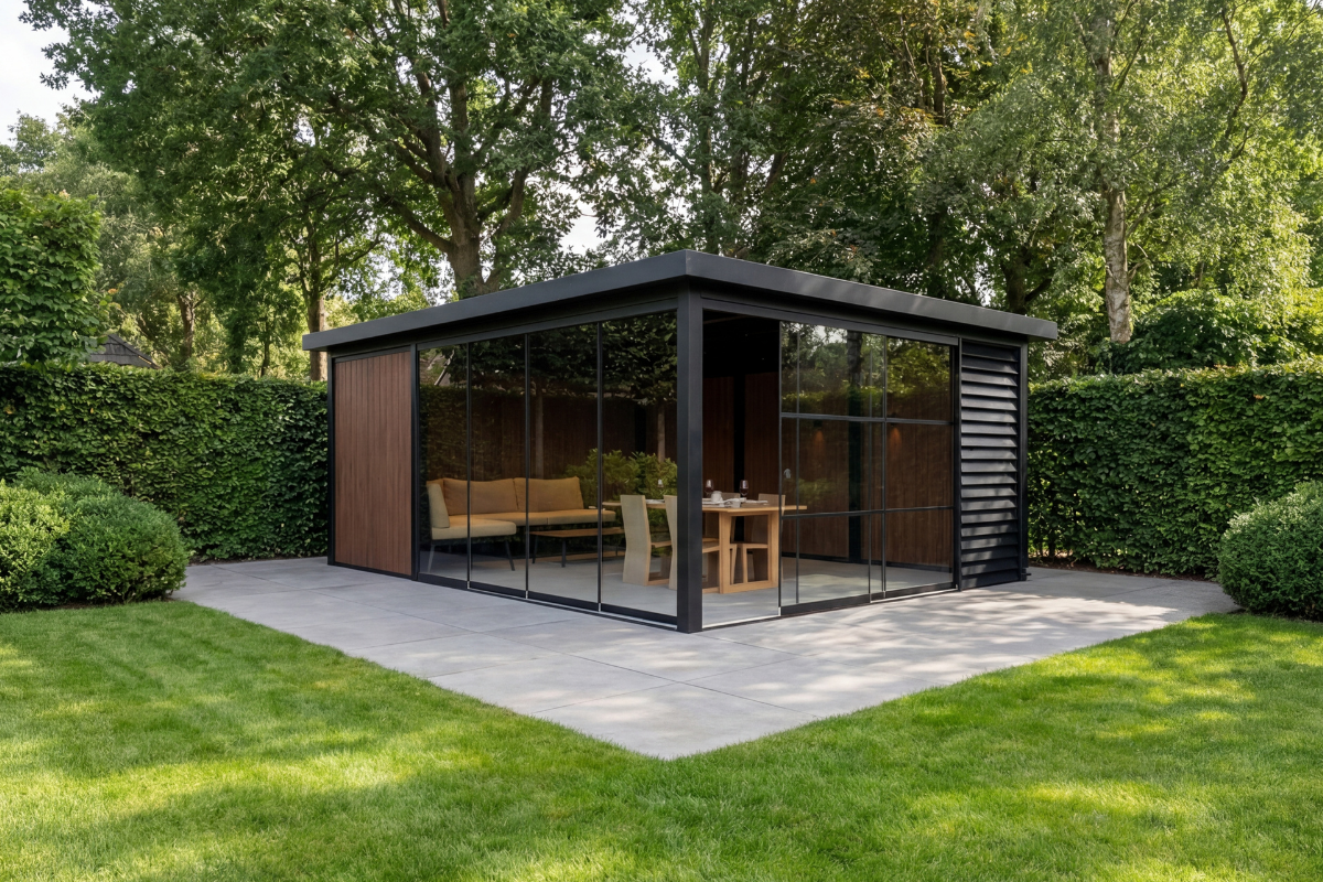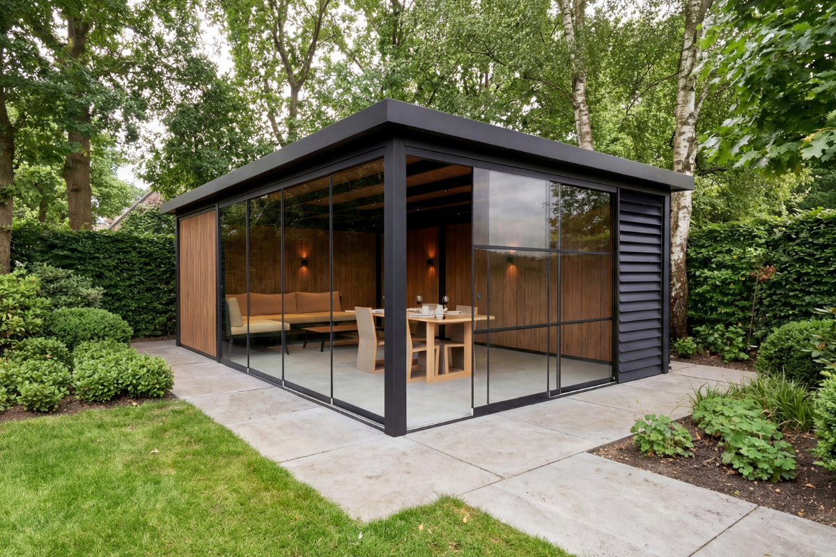 De Panorama Element is ontworpen voor wie buitenleven wil ervaren in zijn meest pure vorm. Zonder opslagruimte, maar met een ongekend royaal zitgedeelte, draait dit model volledig om openheid, comfort en beleving. De heldere belijning en doordachte glasopstelling maken de Element tot een rustige, architectonische verschijning die moeiteloos opgaat in een moderne tuin. Hier staat niet de functie centraal, maar de ruimte zelf.
