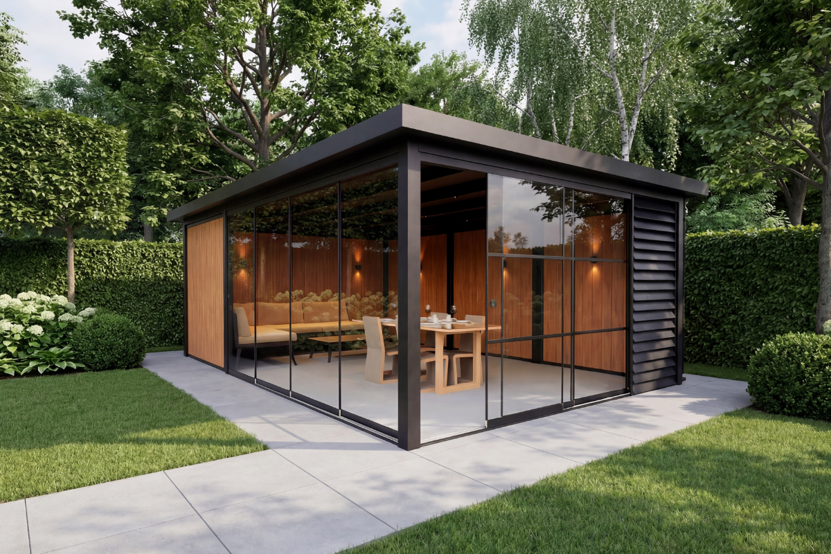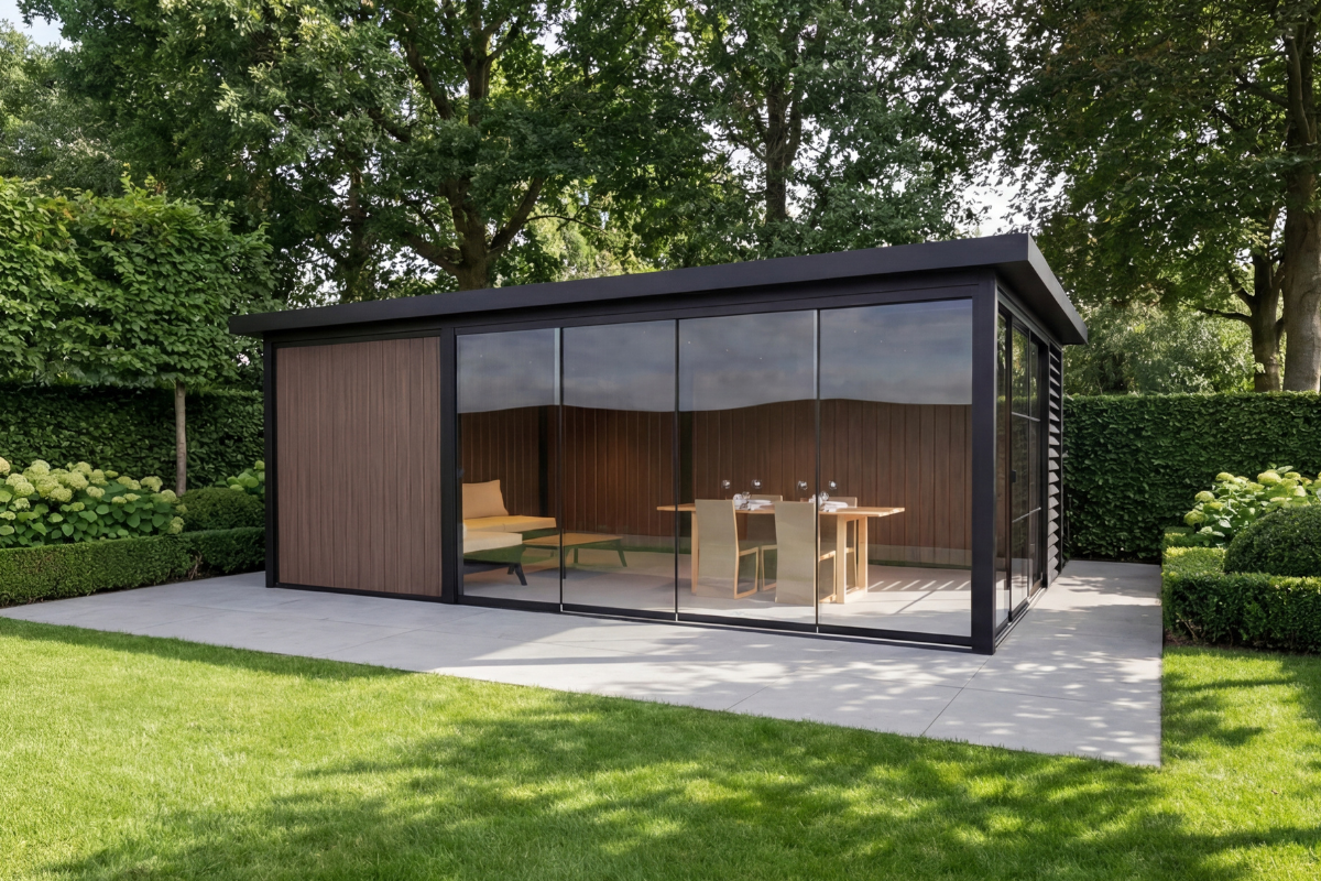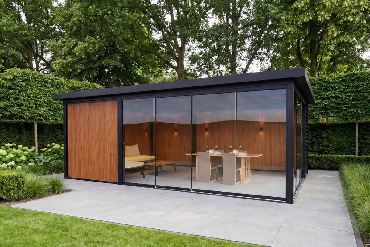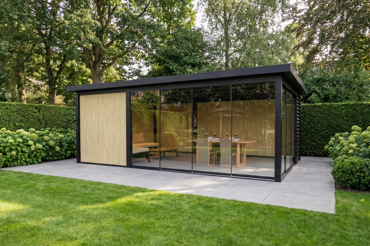 De Panorama Element is ontworpen voor wie buitenleven wil ervaren in zijn meest pure vorm. Zonder opslagruimte, maar met een ongekend royaal zitgedeelte, draait dit model volledig om openheid, comfort en beleving. De heldere belijning en doordachte glasopstelling maken de Element tot een rustige, architectonische verschijning die moeiteloos opgaat in een moderne tuin. Hier staat niet de functie centraal, maar de ruimte zelf.